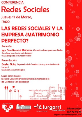 Hitzaldi honen helburua gaur egun garrantzia handia hartzen ari diren sare sozialen inguruko azalpen bat ematea da. Bereziki enpresa munduko jendeari dago zuzendua. Hau, zein puntutaraino den erabilgarri negozio batean aztertzen delarik. Gaur egungo egoerak etengabe berrikuntzak eta garapenak ekartzen ditu, eta enpresak mugimendu horretara nola egokitu azalduko du. Horretarako Igor San Roman Matxain gonbidatu dugu. Bera izango da hitzaldiaren hizlaria. Berak, bere esperientzia eta lanaren alderdi bereizgarrienak helaraziko dizkigu. Bukaeran, entzuleei arlo honen inguruan sorrarazten zaizkien duda guztiak erantzungo ditu.